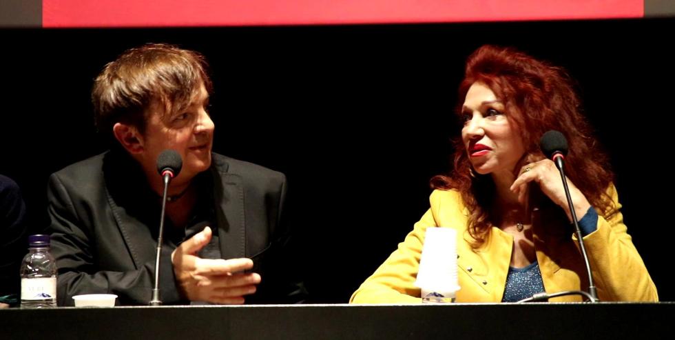 Presentación del libro «El sol tiene una cita con la luna», de Myriam Mèzieres, con la presencia de la autora, del ilustrador Ignasi Blanch, el escritor Àngel Burgas y Octavi Martí, en la Filmoteca de Catalunya en Barcelona, el martes 27 de noviembre de 2018.