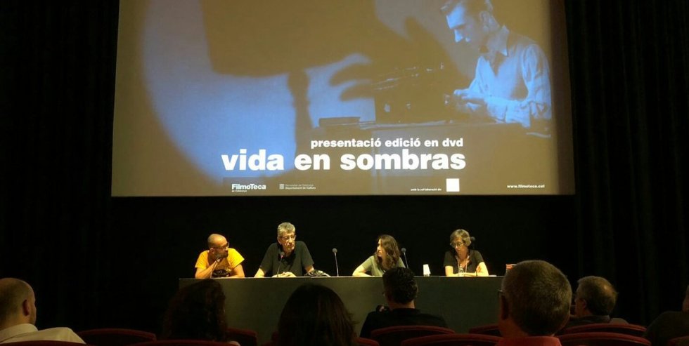 Presentación del dvd de la película «Vida en sombras», de Llorenç Llobet-Gràcia, con la presencia de Mariona Bruzzo (directora del Centre de Conservació i Restauració) Ferran Alberich (responsable de la Restauració de «Vida en sombras») Elisenda Triadó (editora de Intermedio) y Jaume Pujadas (director del documental «El cor del pi negre») en la Filmoteca de Catalunya en Barcelona, el viernes 15 de junio de 2018