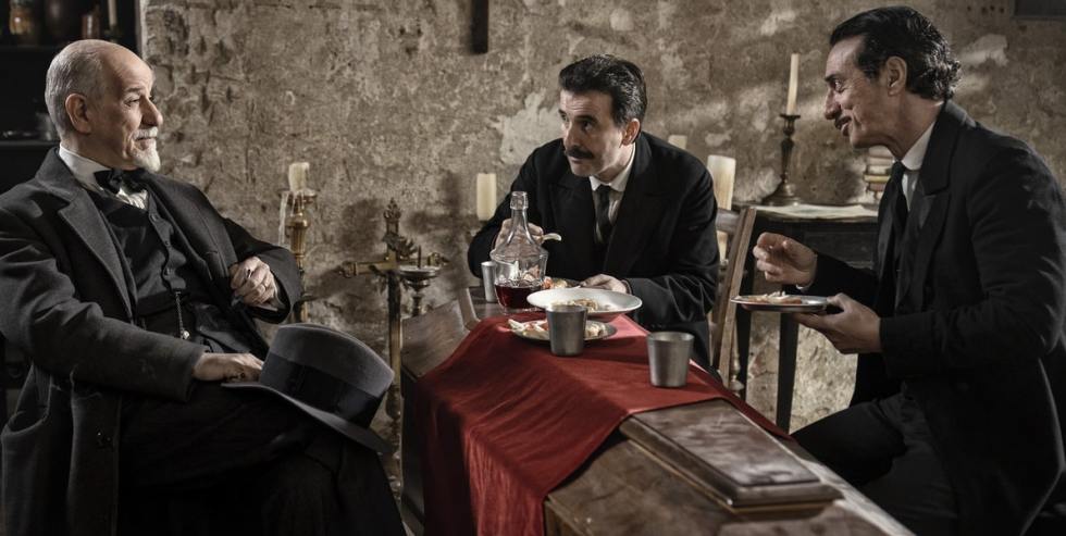 Andò tiene en mente películas como El cartero y Pablo Neruda (1994), de Michael Radford, y Shakespeare enamorado (1998), de John Madden, en las que los poetas famosos lidiaban con personas anónimas y desconocidas y nos tropezamos con relatos llenos de humanidad, transparencia y muy cercanos. La película sigue a Pirandello y también a los otros, ese espejo donde el famoso dramaturgo italiano verá y se inspirará para su inmortal y magnífico texto de “Seis personajes en busca de autor”, que pondrá la piedra del teatro moderno, romperá la cuarta pared, y sobre todo, fusionará la vida, la ficción, el autor, la creatividad, la farsa, la mentira y tantas cosas imposibles de casar hasta entonces. Andò se reúne de un equipo conocido como el cinematógrafo Maurizio Calvesi, que tiene más de 100 títulos en su filmografía, y ha trabajado en las 7 de las 8 películas del director palermitano, y el mencionado Toni Servillo, ahora en la piel de un taciturno y silencioso Luigi Pirandello, en plena crisis creativa y tratando con tantos fantasmas, que recuerda a aquel Ebenezer de Dickens, y a su lado dos fichajes como el dúo cómico “Ficarra e Picone”, esos Gordo y Flaco, esos dos clowns, que podrían pulular por alguna de Valle-Inclán, por sus vidas tan sombrías y esperpénticas, muy del estilo de Buster Keaton y Chaplin y del cine silente.