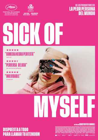 Cuenta la historia que había una joven llamada Signe que trabajaba en una cafetería en uno de esos veranos en Oslo (Noruega). Signe vivía con su chico Thomas, un artista contemporáneo que empieza a llamar la atención en el universo del arte. Hecho que destroza a Signe, que ve como su posición en la relación está pasando a un segundo plano. Pero la joven no se quedará quieta y emprende un diabólico plan para volver a ser el centro de atención. Se tomará unas pastillas prohibidas que le desfiguran el rostro y ahí empezará su protagonismo, pero también su más terrible pesadilla. El director Kirstoffer Borgli (Noruega, 1985), ha destacado con sus cortometrajes que ha presentado en festivales tan prestigiosos como el de Sundance, SXSW, IDFA y CPH:DOX, entre otros. Con Sick of Myself entra en el mundo del largometraje por la puerta grande, planteándonos una fábula muy de nuestro tiempo, porque habla directamente de relaciones superficiales, basadas en la estúpida competitividad, la sobreexposición en las redes sociales, y sobre todo, de salud mental.