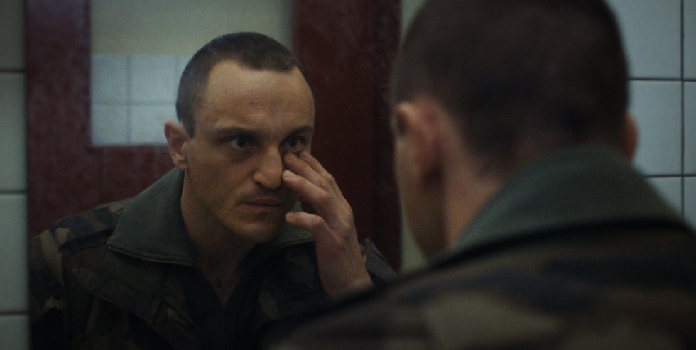 Una historia que arranca en un bus de bielorrusos con destino a un partido de fútbol. Dos de ellos, el mencionado Aleksei y Mikhail, dos jóvenes que ven en Francia y su legión una forma de huir para encontrarse con un futuro mejor. Estamos ante una película muy física y naturalista en su primera mitad, donde abundan los cuerpos, los rostros y el continuo movimiento de los soldados franceses y su preparación, y luego, en su segundo segmento, entramos en un estado diferente, donde lo físico deja pasó a lo emocional, a lo onírico, a las alucinaciones y a los fantasmas, donde el horror y sinsentido de la guerra se vuelve contra Aleksei y lo encierra en una vorágine de sufrimiento, soledad y espectral. Una película apoyada en una estética oscura y nocturna, donde priman los destellos de luz fluorescente, las sombras y los espectros que no se ven pero ahí están, en un grandísimo trabajo de una de las grandes de la cinematografía actuales como Hélêne Louvart (que tiene en su haber nombres tan potentes como Varda, Doillon, Denis, Recha, Rosales, Rohrwacher, Wenders y Hansen-Love, entre otros), con una luz que evidencia el estado emocional que sufre el protagonista, y como todo su alrededor se va convirtiendo en un universo dentro de este plagado de monstruos acechantes que son los que provoca nuestra mente cuando no estamos bien.