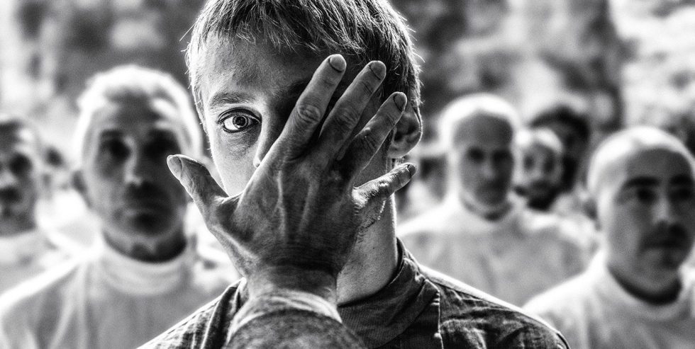 A Woodworth ya la conocíamos por su trabajo junto a Peter Brosens, con el codirigió 5 películas como Khadak (2006), Altiplano (2009) y La quinta estación (2012), que conforman una trilogía sobre las mencionadas malas relaciones de humanos con la naturaleza, después dirigieron el díptico El rey de los belgas (2016) y su continuación El emperador descalzo (2019), comedias satíricas ambientadas en los Balcanes. Ahora, y en solitario, Brosens está en labores de producción, construye una historia minimalista, basándose libremente en la novela “El desierto de los tártaros”, de Dino Buzzati, que ya tuvo una adaptación muy fiel dirigida por Valerio Zurlini en 1976. Su propuesta coge la trama principal, la del ejército esperando a ser atacado, para llevarnos en un primoroso blanco y negro y rodado en 16mm por la cinematografía Virginie Surdej en un extraordinario trabajo de composición, que ya habíamos visto por sus trabajos para Nabil Ayouch, Maryam Touzani y César Díaz. La férrea disciplina militar en el interior de la fortaleza como si fuese un universo en sí mismo, aislado del mundo y suspendido en el tiempo, en una existencia etérea regido por unas constantes maniobras y ejercicios militares donde las cosas se hacen pero con la sensación de inutilidad y de forma desesperada.