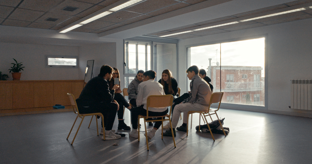 A esta ilustre terna se suma Grup Natural, de Nina Solà Carbonell, formada en la Escac en documental, con amplia experiencia en dirección de teatro y cine, y en los equipos de películas como Alcaldesa (22016), de Pau Faus y la citada La bona escola. Su primer largometraje se centra en un grupo de adolescentes y en las cuatro paredes de Súnion, una escuela concertada/privada, regida por un innovador método pedagógico, dando mucha autonomía al alumno y al grupo, con los denominados “grups naturals” formados por ocho alumnos en los que se van generando dinámicas para ver cómo se desarrollan y cómo gestionan las actividades en la que participan y los conflictos y demás. Seguimos tres: uno de primero de la Eso, otro de tercero de la Eso y finalmente, uno de segundo de bachillerato. Tres momentos importantes en la etapa escolar y vital de un grupo de chicos y chicas. La cámara encuadra la película a través de las aulas, espacios y demás espacios de la citada escuela, a través de un año: al inicio de curso, a su mitad y en la despedida. Somos testigos de sus encuentros y desencuentros de los diferentes alumnos, sus primeras alegrías y derrotas, sus relaciones en clase, con la escuela y su futuro. Los vemos hablar entre ellos, con sus maestros y haciendo trabajo en la escuela, otra faceta del mencionado método.